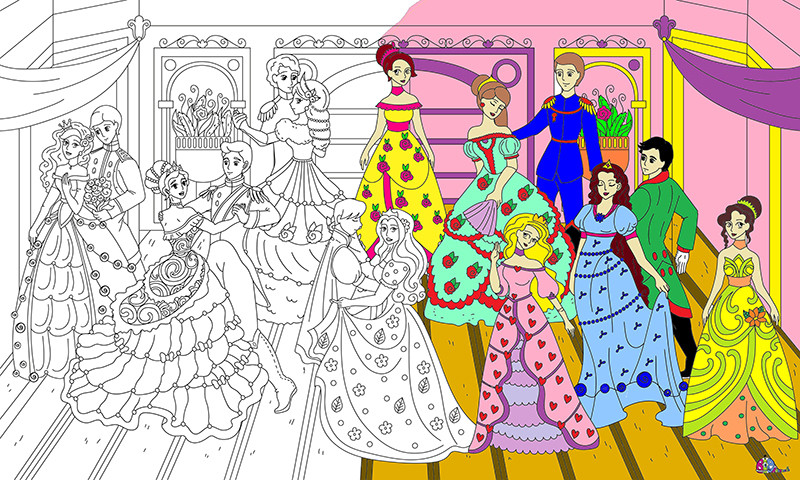 | Big Raskraski Плакат-раскраска «Принцессы на балу»