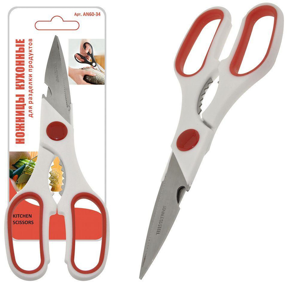 Мультидом Трейдинг Ножницы кухонные-20% +60 острые лезвия удобная ручка прочная конструкция вскрывает упаковку