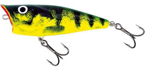 Когда рыба активна, иногда достаточно только сделать быструю проводку Salmo Pop на постоянной скорости, хотя в таких случаях, Salmo Pop создает относительно слабую волну перед собой. Если при проводке передавать приманке рывки кончиком спиннинга, Salmo Pop будет привлекать рыбу «булькающим» шумом и оставлять на воде за собой след из пузырей. После проведения серий последовательных рывков приманкой, делайте небольшие паузы. Когда рыба пассивна, хороший способ попробовать сделать ряд «скачков» Salmo Pop, при этом каждый рывок должен быть длиной 0,3-0,5 м; сделайте два или три рывка, затем пауза в 3-4 сек., в течение которой приманка должна спокойно плавать на поверхности воды. Очень часто наилучшие результаты приносит комбинация этих способов.