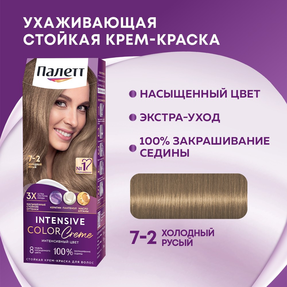 Palette Крем-краска для волос «Роскошный Блонд», оттенок 7-2 Холодный русый