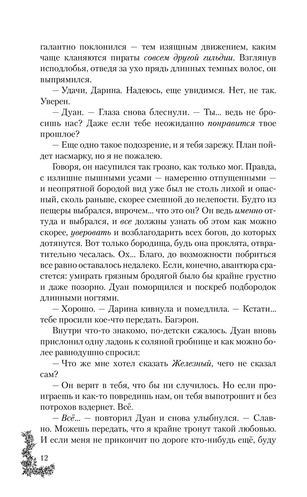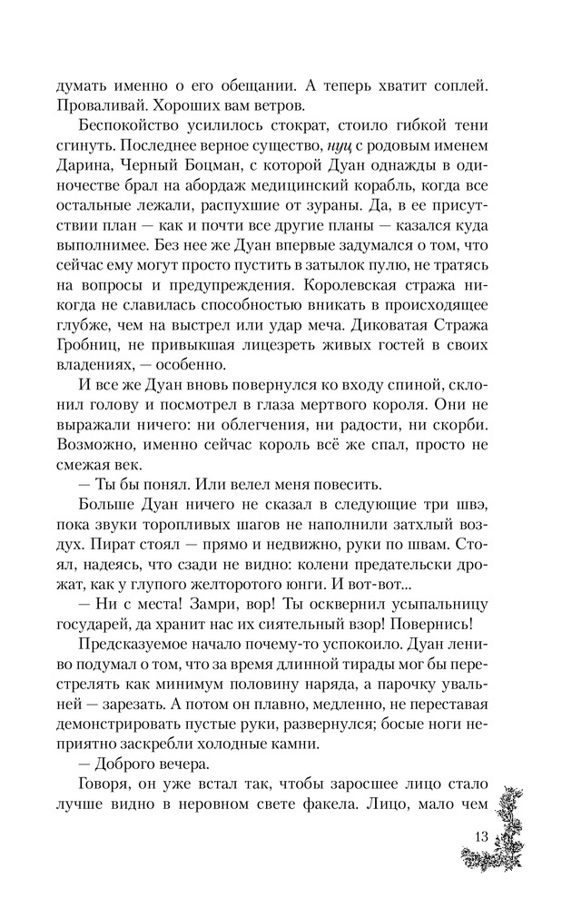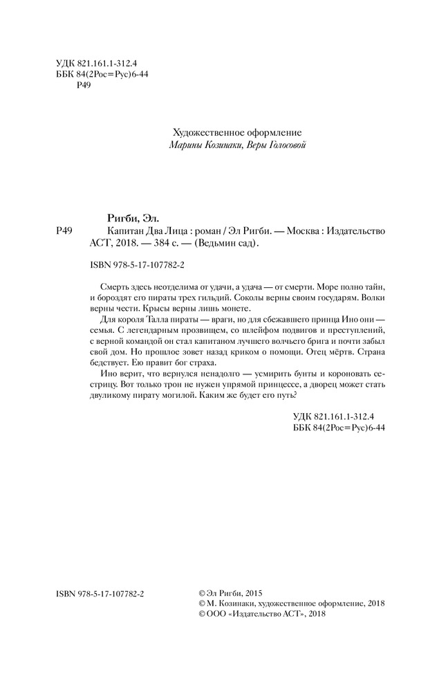 В данный момент этот товар отсутствует в продаже. Возможно, у нас найдется аналогичный или похожий товар здесь. Серия: Ведьмин сад Смерть здесь неотделима от удачи, а удача — от смерти. Море полно тайн, и бороздят его пираты трех гильдий. Соколы верны своим государям. Волки верны чести. Крысы верны лишь монете. Для короля Талла пираты — враги, но для сбежавшего принца Ино они — семья. С легендарным прозвищем, со шлейфом подвигов и преступлений, с верной командой он стал капитаном лучшего волчьего брига и почти забыл свой дом. Но прошлое зовет назад криком о помощи. Отец мертв. Страна бедствует. Ею правит бог страха. Ино верит, что вернулся ненадолго — усмирить бунты и короновать сестрицу. Вот только трон не нужен упрямой принцессе, а дворец может стать двуликому пирату могилой. Каким же будет его путь?