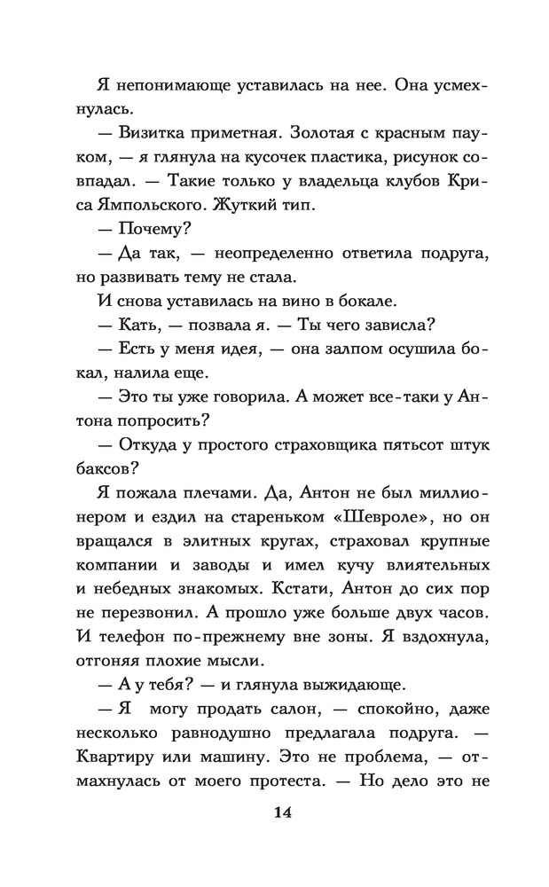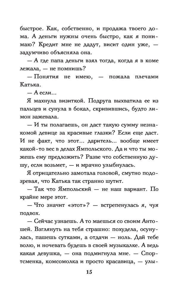 Прочитав описание и доступные к прочтению 15 страниц, мне показалось, что книга будет интересной. Но честно признаться была немного разочарована, все банально до невозможного. Просто есть такие книги которые читаешь и они тебя завораживают на столько, что в некоторые моменты перестаешь дышать, а здесь все спокойно. Прочитала за два вечера, читается легко.