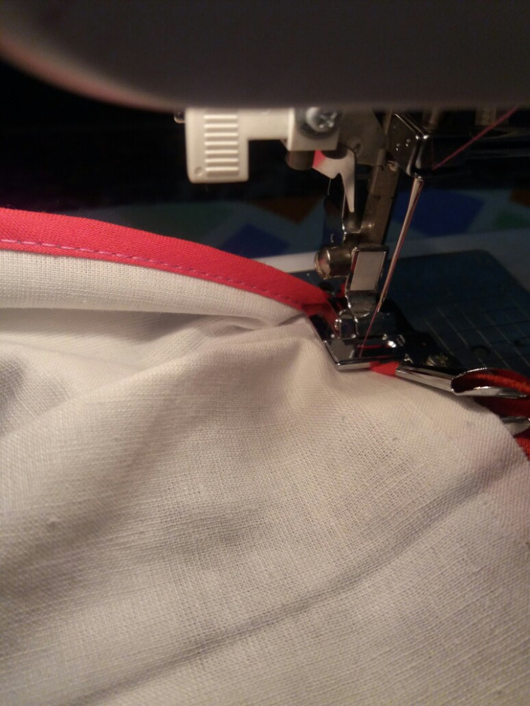 Лапка хорошо подходит для окантовки х/б бейкой, с атласной бейкой работать неудобно.