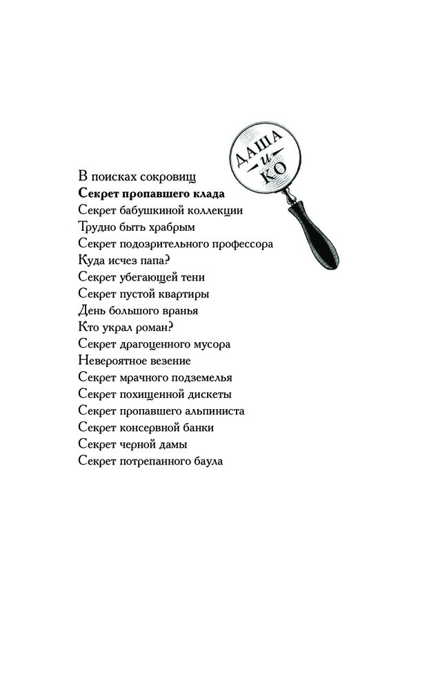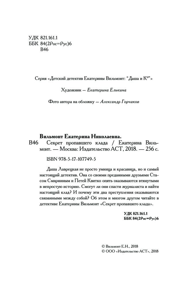 💳 Оплатить за товар можно при получении 🇰🇿 Есть бесплатная доставка по Казахстану от 1 дня 🎁 Копите бонусы с каждой покупки Серия: Детский детектив Екатерины Вильмонт: «Даша и Ко» Даша Лаврецкая не просто умница и красавица, но и самый настоящий детектив. Она со своими преданными друзьями Стасом Смирниным и Петей Квитко опять оказываются в тянутыми в непростую историю. Смогут ли они спасти журналиста и найти настоящий клад? И почему эти два преступления оказываются связанными между собой? |