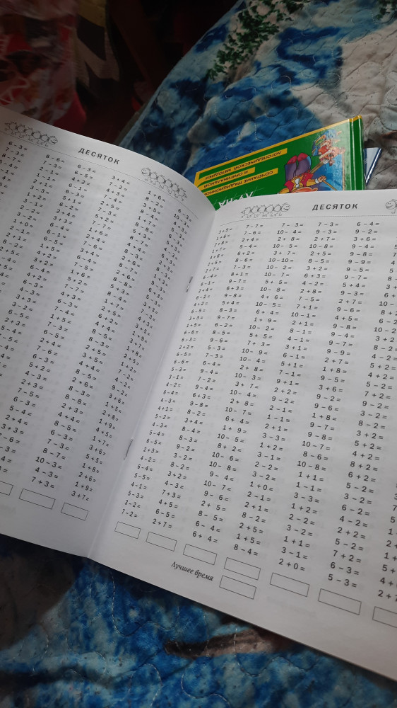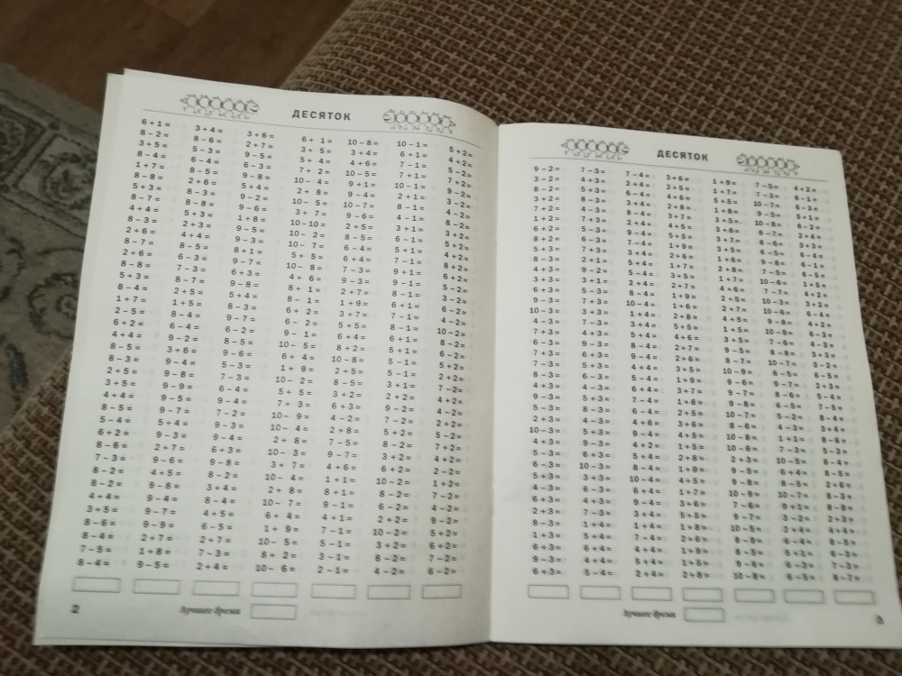 Очень хорошая тетрадка, примеров очень много, можно довести счёт до автоматизма, если ребенок по ней будет заниматься. Фото прилагается.