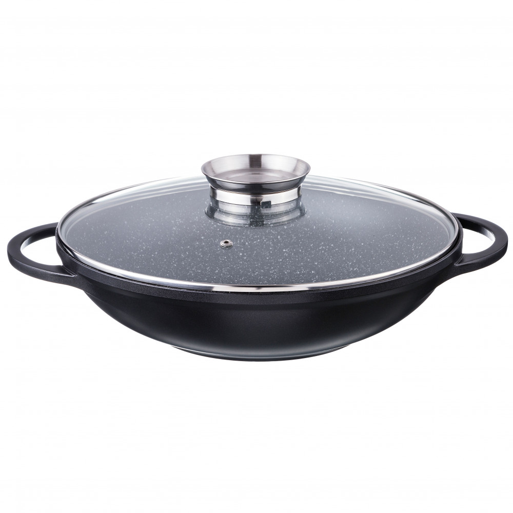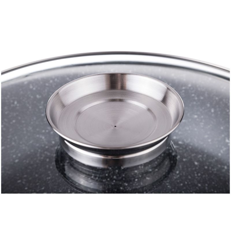 • Стеклянная крышка формирует необходимый температурный режим без потерь тепла и сохраняет аромат блюда, в ней предусмотрено отверстие для выхода пара. Прозрачный материал позволяет наблюдать за процессом готовки.