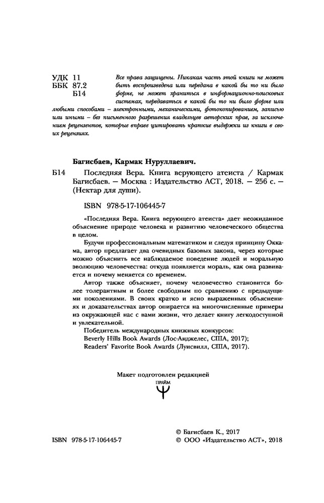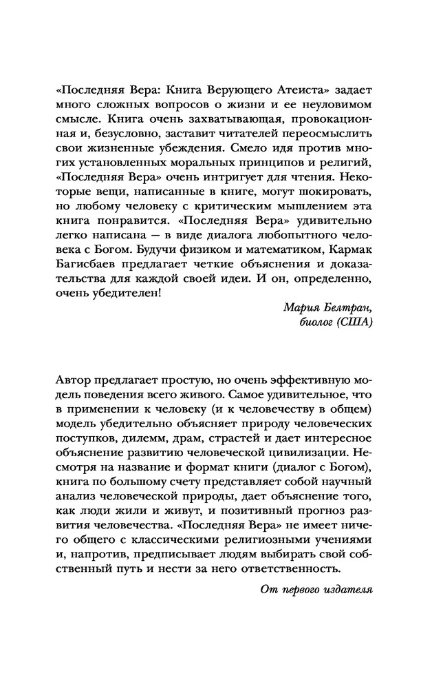 | Последняя Вера. Книга верующего атеиста Кармак Нуруллаевич Багисбаев