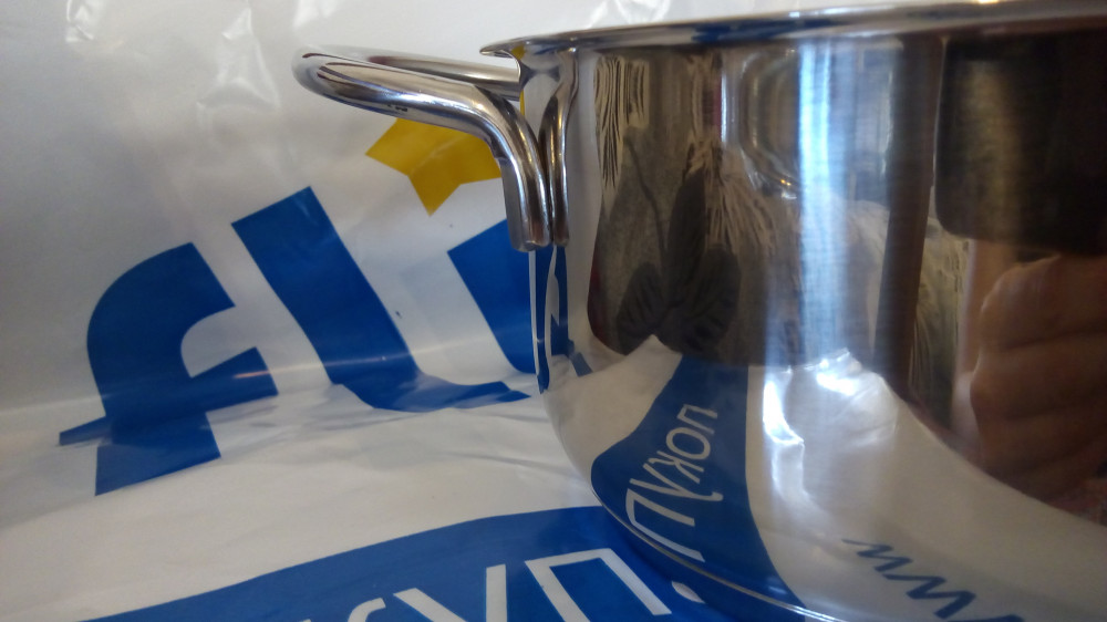 Хорошенькая, маленькая кастрюлька с зеркальной поверхностью. Для такой малышки очень тяжелая.