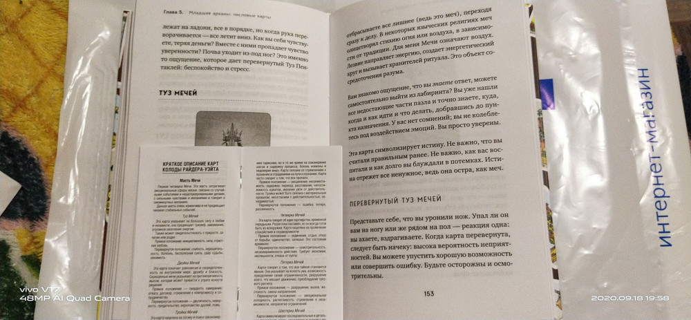 Заказала книгу и карты Таро. Пришла посылка в течение недели, молодцы, быстро оформили и доставили заказ! Приятно удивлена!!!! Толкование значения карт в книге и брошурке от карт разные...немного озадачена на какое из толкований опираться при раскладе. Интернет думаю, поможет разобраться в хитросплетениях карт таро...