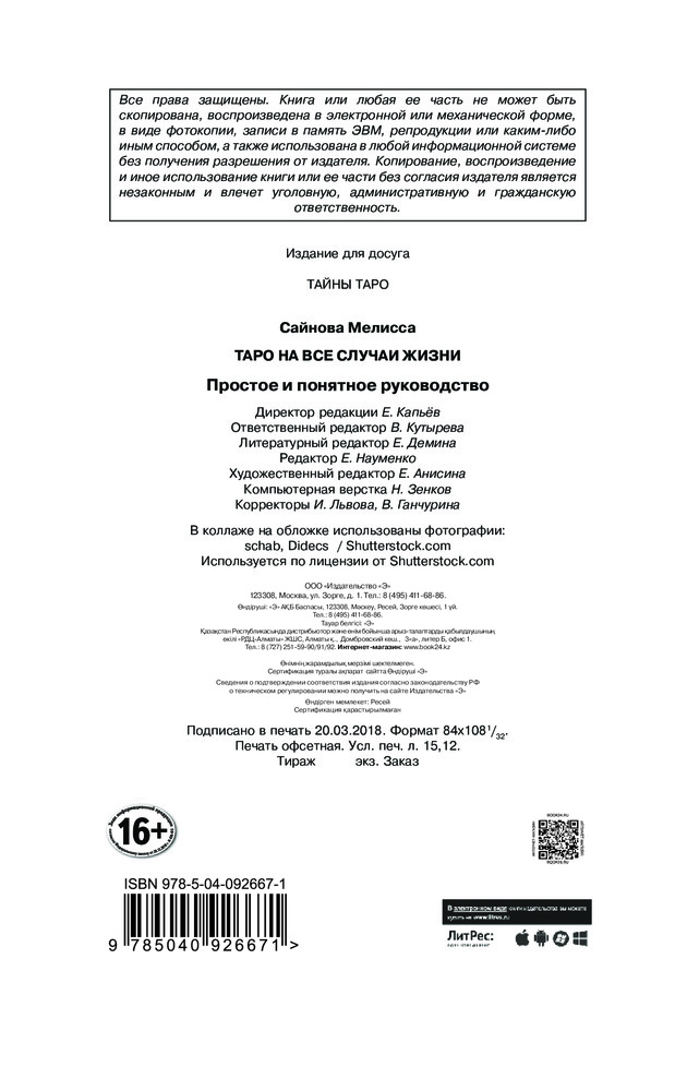 Таро на все случаи жизни. Простое и понятное руководствоВ данный момент этот товар отсутствует в продаже. Возможно, у нас найдется аналогичный или похожий товар здесь. Серия: Спорт изнутри Эта книга даст вам возможность найти свой собственный подход к Таро. Ее автор, опытная гадалка Мелисса Сайнова, откроет секреты работы с Таро, прояснит практические вопросы, интересующие не только новичков, но и опытных тарологов, развеет основные суеверия и заблуждения, окружающих эту сложную систему. А главное — поможет выстроить личные отношения с картами — и получить ответы на все вопросы. |