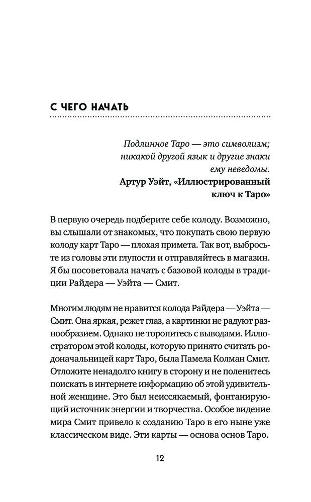 Начал читать эту книгу. Всё ясно и понятно. По совету автора книги заказал, миниатюрные карты ТАРО. Теперь у меня будет 2 колоды. Таро Уэйта Мини (78+2 карты). Теперь у меня комплект.