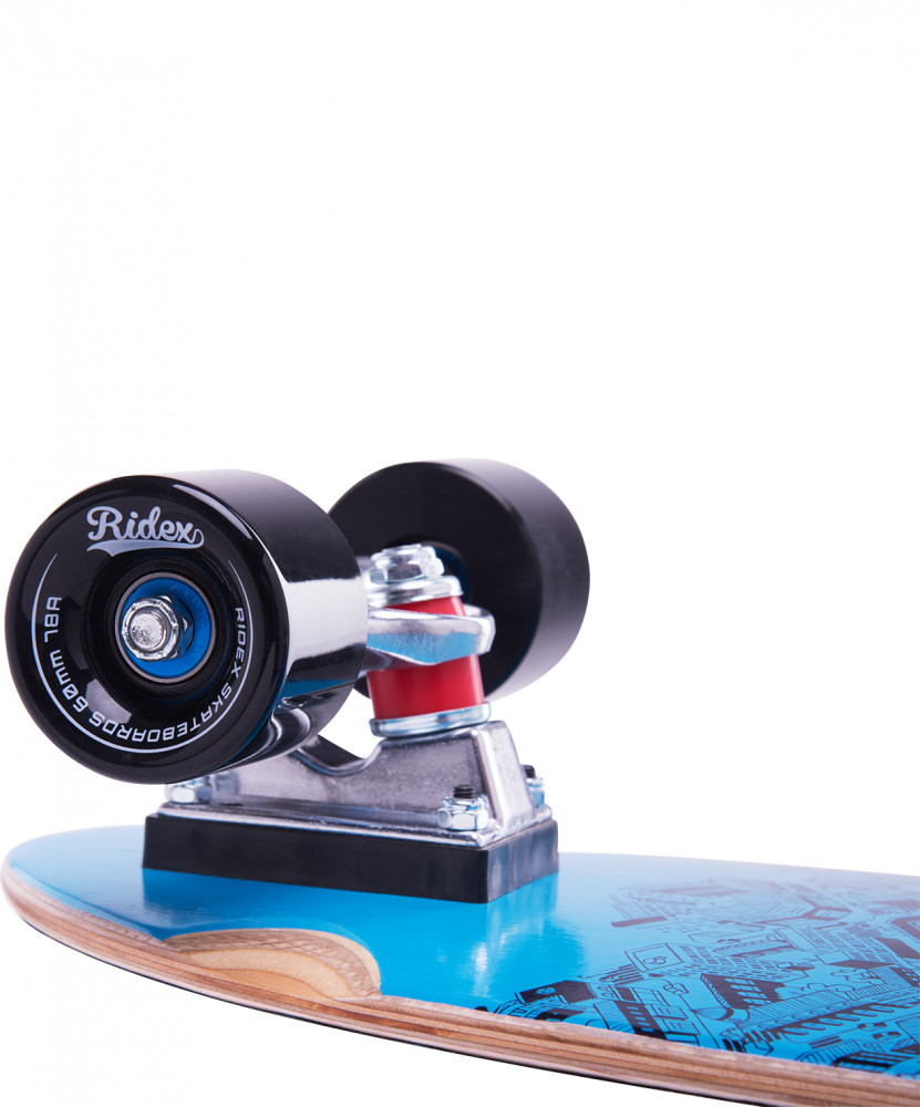 Доска из классической серии коллекции Ridex. Повторяет форму доски круизбордов 1960-х годов. Подвеска расположена близко к передней части доски, обеспечивая повышенную маневренность. Плоская форма доски без конкейвов. Умеренно мягкие колеса обеспечат хороший накат на городских дорогах. Прочная алюминиевая подвеска для максимальной безопасности уличного катания.