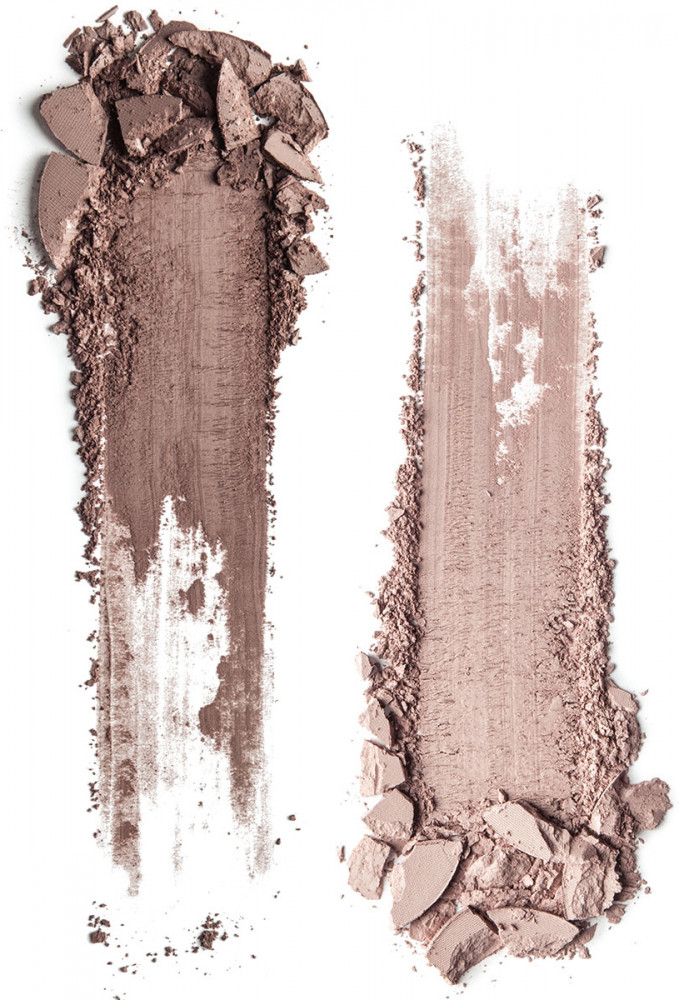 104 - два матовых оттенка, темный - это коричневый без излишней рыжины, он чуть пылит, в жизни выглядит холоднее, чем на фото, а у светлого бежево-розовый тон, он похож на пудру.