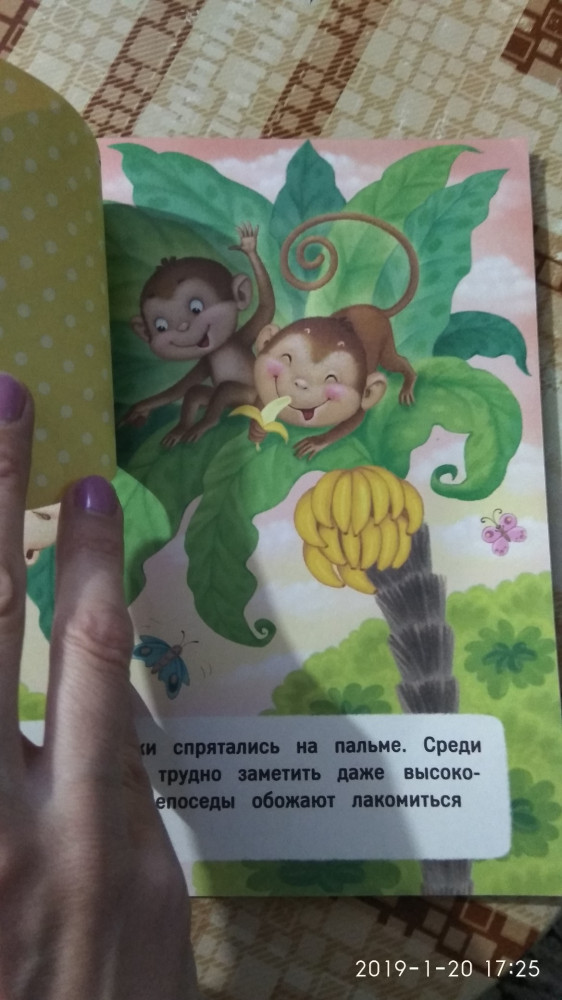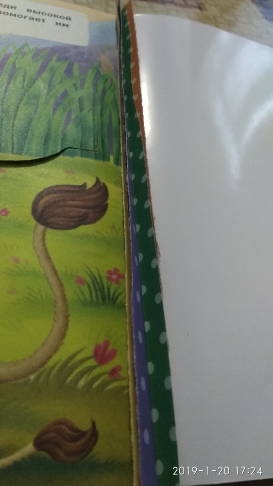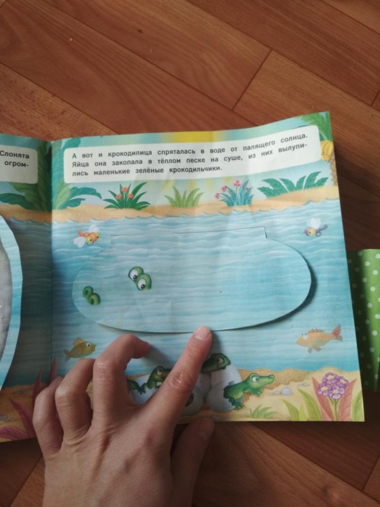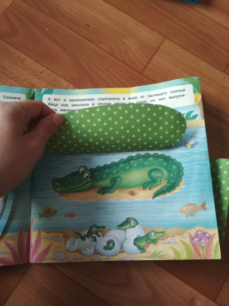 Книжка яркая, рисунки не избитые. Там и крокодил, осьминог, попугаи, обезьянки и т.д. страницы тонкие, дети быстро помяли ее, переворачивая страницы и она истрепалась. Если бы страницы были плотнее, было бы отлично. Взяла еще другие варианты с окошками, там книжка с плотными картонными страницами. Она цела и невредима. А к этой почему-то интереса нет, жалко что купила. Дорого. Журнал тонкий, окошки надо самим вырезать и клеить, фото прилагаю.