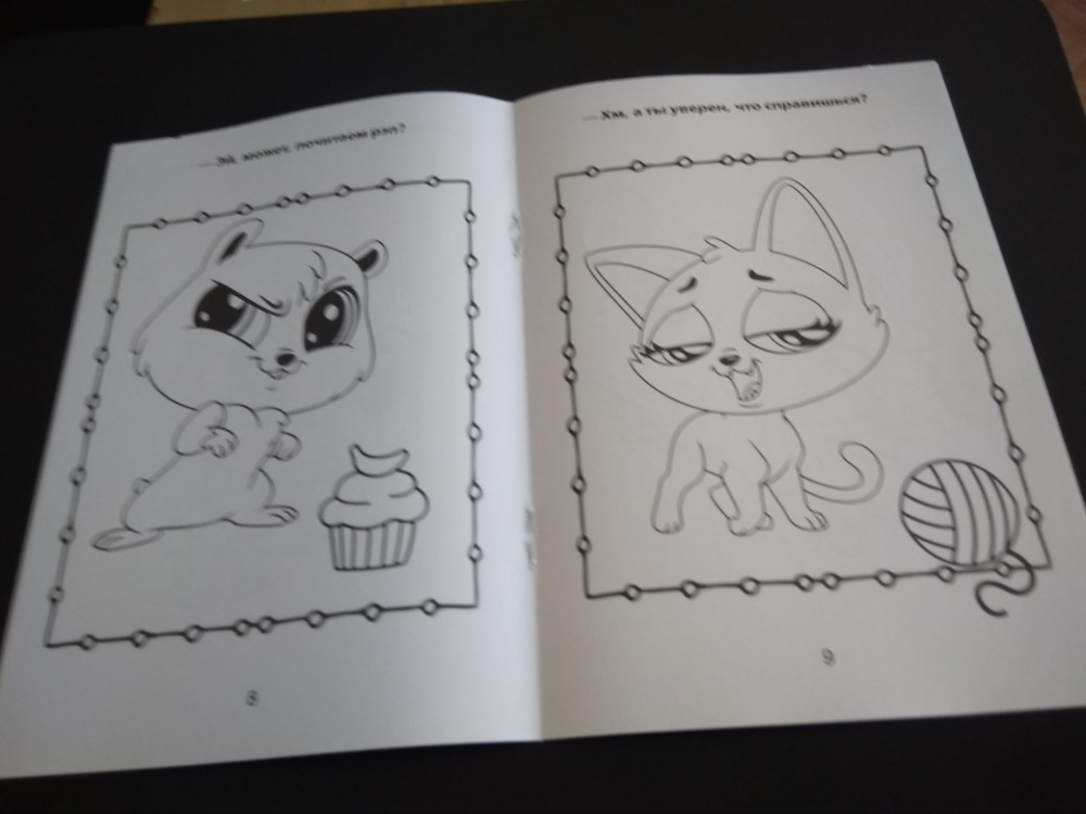 Любимые персонажи , небольшой формат , белые листы - основные наши требования к раскраскам . Но , листы немного просвечивают , раскрашивать только карандашами . Но я не считаю это проблемой или поводом для снижения оценки . Для детей карандашами рисовать полезно .