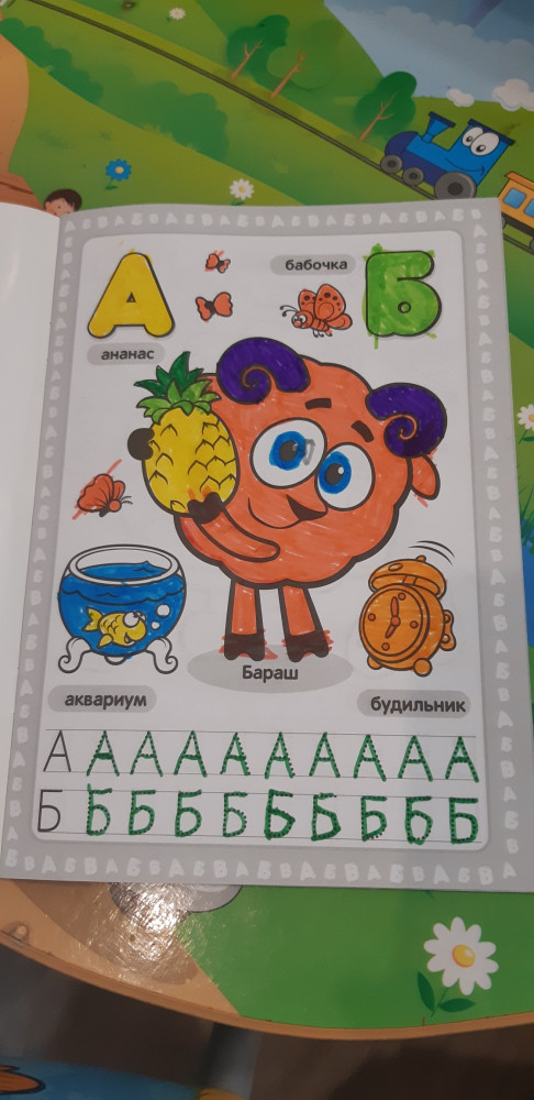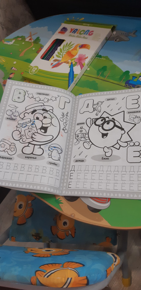Хорошая раскраска. Буквы есть, и в прописи, и для раскрашивания. Сын красит фломастерами, листы плотные, раскрашенный рисунок фломастером почти не просвечивает на обратной стороне. Помимо героев мультфильма, на каждой странице предметы на данную букву .