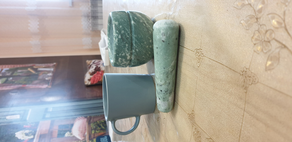 Это просто шикарная мраморная ступка. Очееень тяжёлая. Очееень красивая. Лучшее ее нет :)