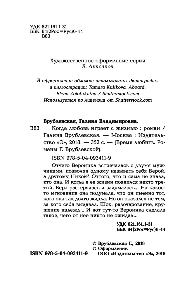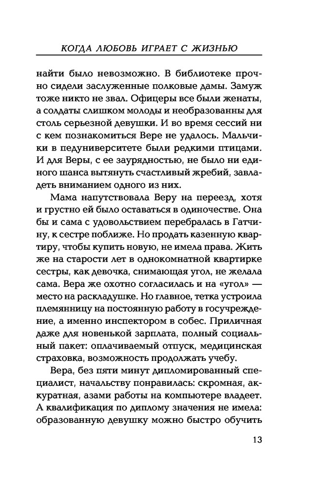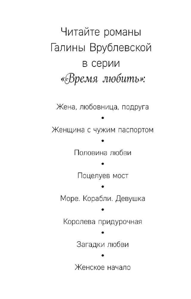 Когда любовь играет с жизньюГалина Владимировна Врублевская В данный момент этот товар отсутствует в продаже. Возможно, у нас найдется аналогичный или похожий товар здесь. Серия: Время любить. Романы Г. Врублевской (обложка) Отчего Вероника встречалась с двумя мужчинами, позволяя одному называть себя Верой, а другому Никой? Оттого, что и сама не знала, кто она. И когда в ее жизни появился некто третий, Вера растерялась и задумалась... На какое-то мгновение она подумала, что он именно тот, кого она так долго ждала. Но он оказался не тем, за кого себя выдавал. Шок, разочарование, крушение надежд... И вот тут-то Вероника сделала такое, чего от нее никто не ожидал... |
