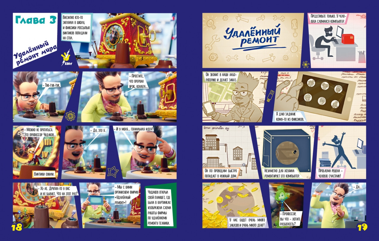 В этот раз большой секрет чуть не был раскрыт. И виной этому стало революционное изобретение профессора Чудакова. Энергобраслеты позволяют фиксикам перемещаться по электрическим проводам. Легкомысленное поведение Файера, который решил воспользоваться энергобраслетами без разрешения, чуть не обернулось настоящей катастрофой. Под действием электричества он перестал быть самим собой и даже обидел своего лучшего друга - маленького Нолика. Узнать, получится ли у друзей помириться, сохранить большой секрет и предотвратить мировую катастрофу, а ещё увидеть своими глазами лучшие кадры полнометражного мультфильма "Фиксики. Большой секрет", вы сможете в комиксе, написанном по его сценарию. |