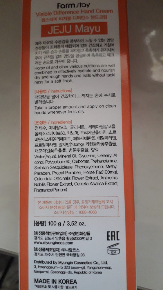 Myungin Corporation Крем для рук c экстрактом жира лошади