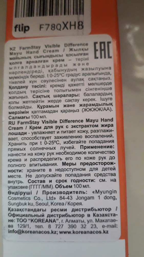 Крем хороший 👍, для моей сухой кожи рук подходит идеально, хорошо впитывает, приятно пахнет. Производителю Farm Stay спасибо, Флип спасибо за доставку!