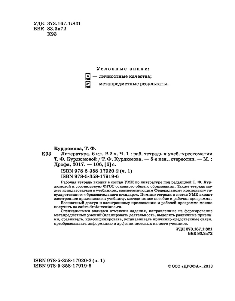 💳 Оплатить за товар можно при получении 🇰🇿 Есть бесплатная доставка по Казахстану от 1 дня 🎁 Копите бонусы с каждой покупки Серия: Вертикаль. 6 класс Рабочая тетрадь входит в состав УМК по литературе под редакцией Т.Ф. Курдюмовой и соответствует ФГОС основного общего образования. Также тетрадь может использоваться с учебником, соответствующим Федеральному компоненту государственного образовательного стандарта. Помимо тетради в состав УМК входят электронное приложение к учебнику, методическое пособие и рабочая программа. |