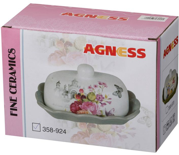 Масленка Agness «Family» для хранения и подачи масла на стол, поможет сохранить его натуральный запах и насыщенный вкус. Её можно использовать для сервировки завтраков и чаепитий. Стильный классический дизайн украсит праздничный стол. Её размеры идеальны для хранения, она не займет много места на столе или в холодильнике.