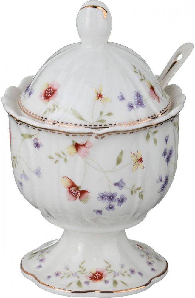 Сахарница легко поместится на полке в шкафу, на открытом стеллаже на кухне, будет отлично смотреться прямо на кухонной столешнице или на праздничном столе. Емкость отличается стильным дизайном с ярким цветочным рисунком, поэтому она не только сэкономит пространство на вашей кухне, но и украсит её интерьер.