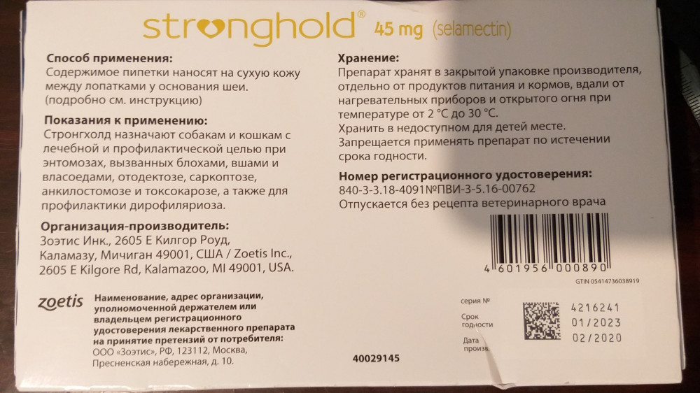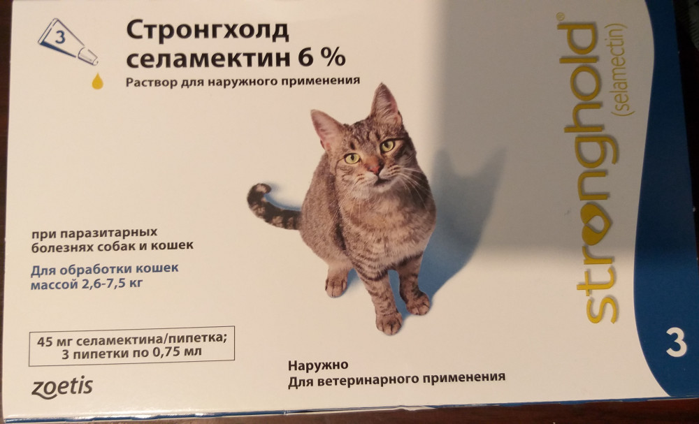 Отзывы «Капли от блох, ушных и чесоточных клещей, гельминтов для кошек «Стронгхолд», 3 пипетки»