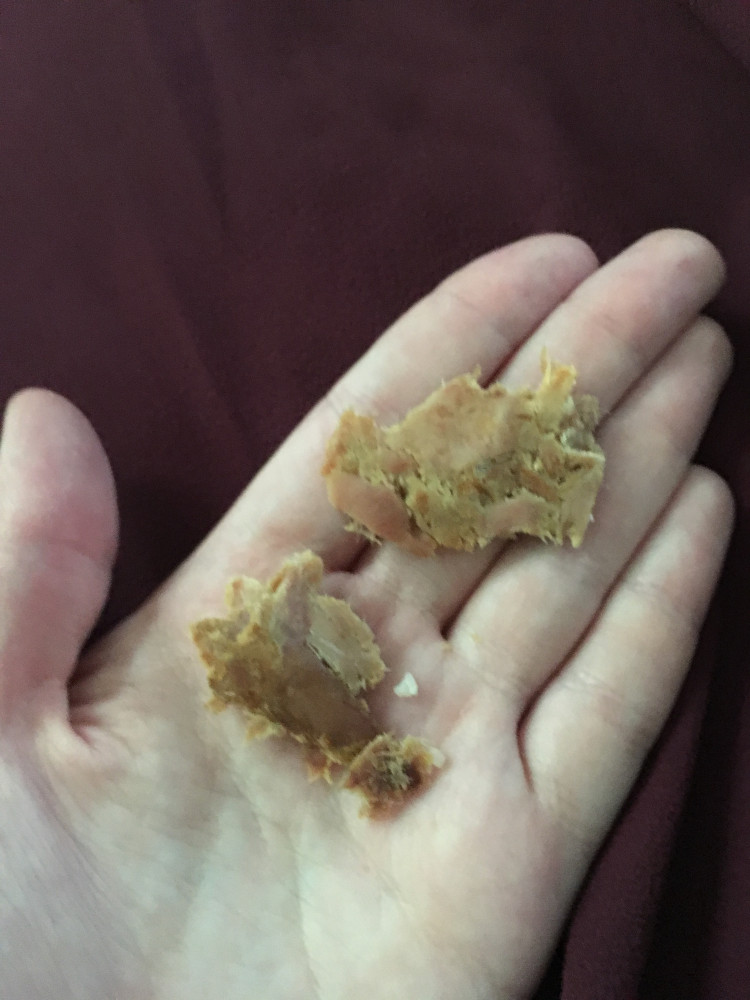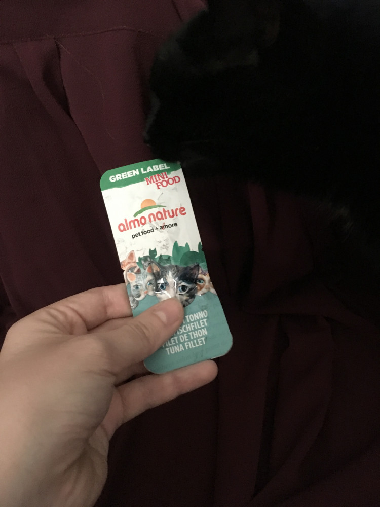 Пакетик ну ооооочень маленький. Состав отличный, только крупинки риса по моему мнению жестковаты (их на весь пакетик штук 6 было). Кот съел с удовольствием, запах привлек его сразу. Еще раз не куплю, ибо для такого маленького количества уж очень дорого.