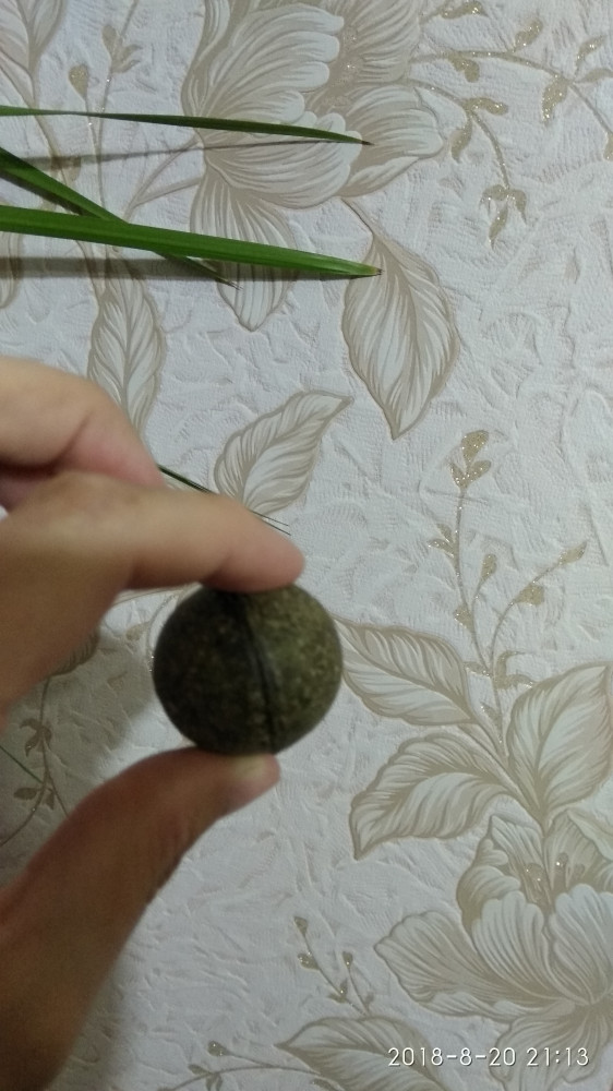 Шарик очень маленький, размером с грецкий орех. Купила ориентируясь на отзывы, но на нашего кота шарик не произвёл совсем никакого впечатления. Кот понюхал и всё. Впустую потрачены деньги. Жаль.