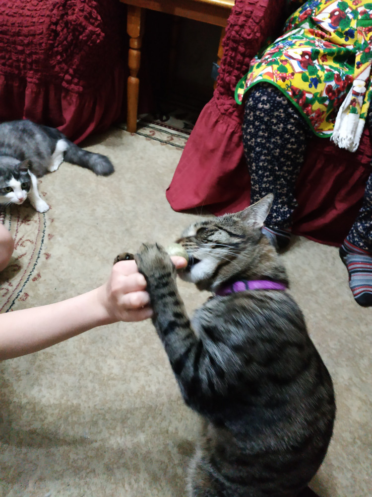 Котики были рады такому сюрпризу! Но вскоре уже куда-то закатили шарик)) Нужно найти.