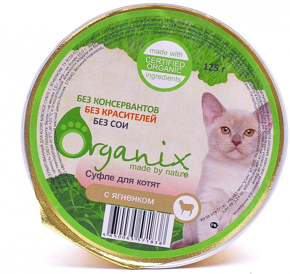 Organix Мясное суфле для котят с ягненком (125 гр)-20% +7 вкусный приятный запах суфле