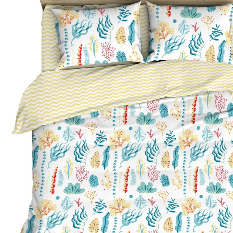 Комплект постельного белья «Подводный мир» создан из ткани бязь - гипоаллергенного, экологичного, высококачественного, крупнозакрученного волокна, благодаря чему эта бязь (эта ткань) мягкая, нежная на ощупь и очень прочная, не образует катышков на поверхности. При соблюдении рекомендаций по уходу, это белье выдерживает много стирок (более 70), не линяет и не теряет свою первоначальную прочность. Бесшовное постельное белье «Василиса» - это высококачественный сертифицированный продукт.