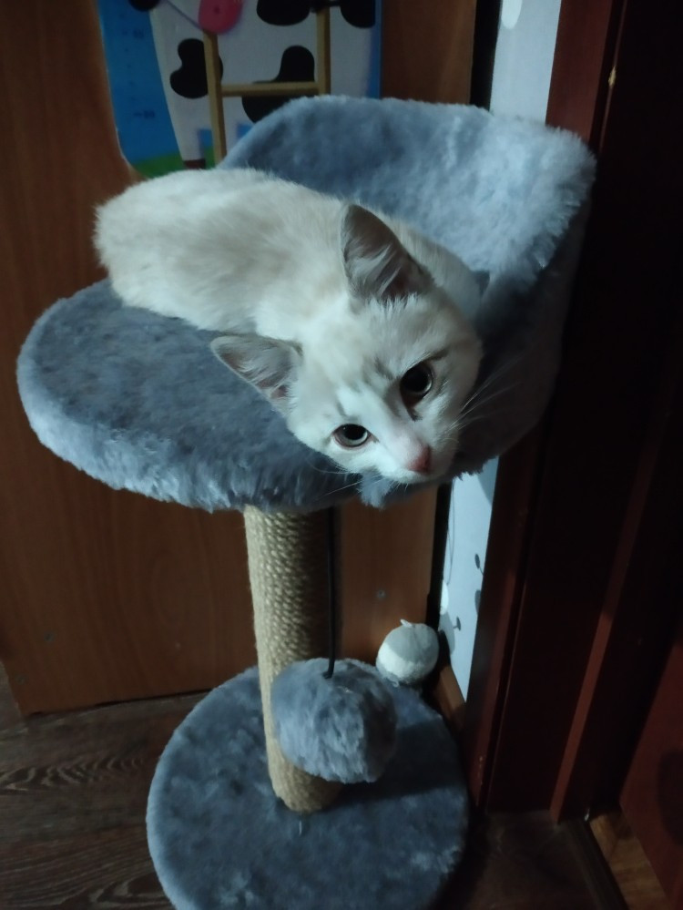 Столбик очень тонкий для взрослой кошки, а когда она пытается лечь на лежанку, она шатается, причем кошка легкая. Думаю вещь именно для котят.