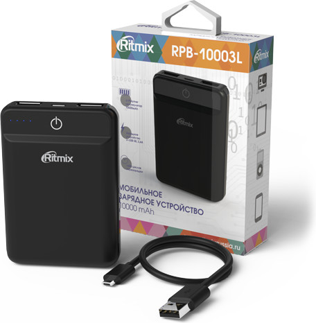 Ritmix Аккумулятор внешний Ritmix RPB-10003L 10000 mah (черный)В данный момент этот товар отсутствует в продаже. Возможно, у нас найдется аналогичный или похожий товар здесь. Ritmix RPB-10003L — это самый компактный в своём классе Power Bank с ёмкостью 10 000 мАч, предназначенный для зарядки мобильных телефонов, смартфонов, планшетов, MP3-плееров и любой другой техники с возможностью питания от USB-порта. |