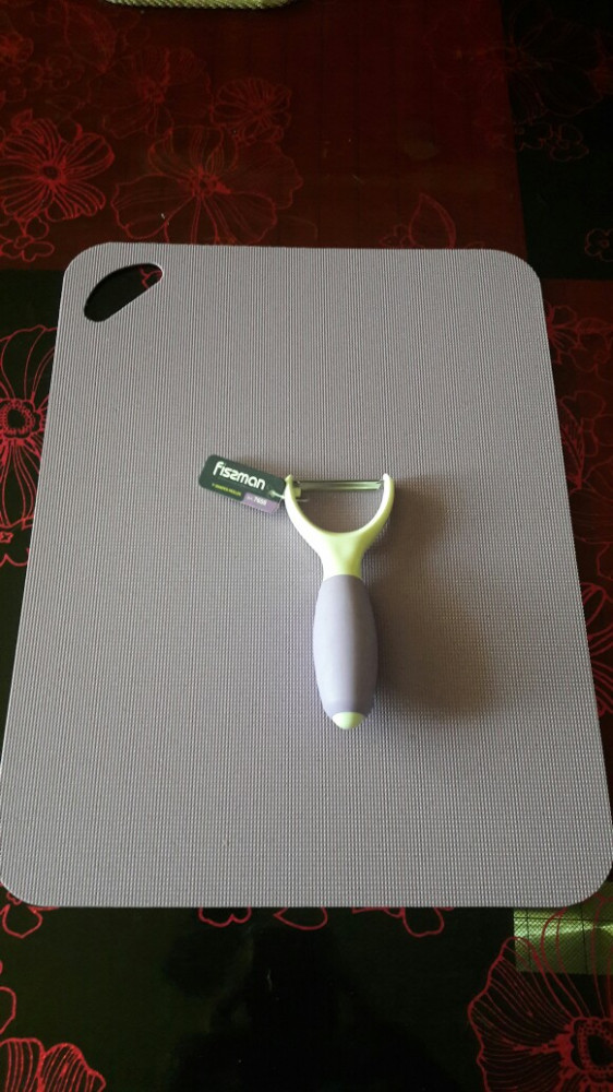 Нравятся гибкие разделочные доски, да, по столу скользит, хотя и рифленая, но для меня это не критично - для серьезной разделки с очень острыми ножами использую другие доски, более массивные и устойчивые. Попробовать что ли на влажной тряпке разместить эту доску - удобно же, много накрошить и, согнув доску, ссыпать с нее же в кастрюлю или сковороду.