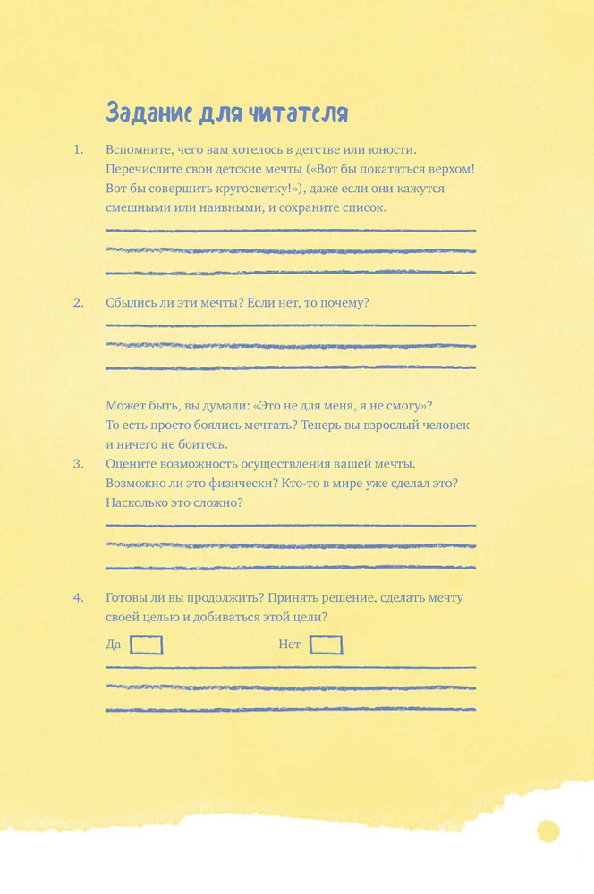 Как мечтать, чтобы сбывалосьВ данный момент этот товар отсутствует в продаже. Возможно, у нас найдется аналогичный или похожий товар здесь. Мы часто видим ситуацию в мрачных тонах, и неудача представляется чем-то ужасным. Но вообразите себе наихудший сценарий. Что может случиться? Не добьетесь цели? Но ведь вы и сейчас ее не добились, так не лучше ли попытаться? Если действовать, то есть шанс, что мечта сбудется. Если не действовать, она не сбудется никогда. |