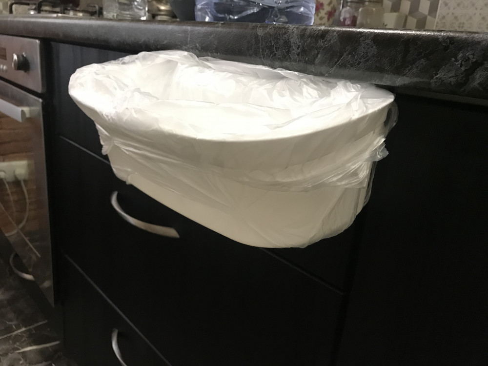 Замечательное корытце! Пластик шелковистый, белоснежный. В контейнер ставим пакет, в пакет бросаем мусор, утром пакетик выносится. если что-то подтекло, или брошено мимо пакета, не беда - корытце легко моется. Планирую заказать ещё в подарок.