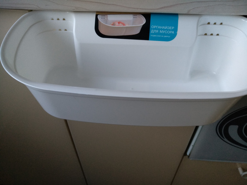 Ожидала чуть большего, но если честно хороший бюджетный вариант корзины для мусора или нарезания овощей. На моей кухне я смогла прикрепить только в одном месте, к сожалению. Лучше заранее продумать куда будете ее крепить.