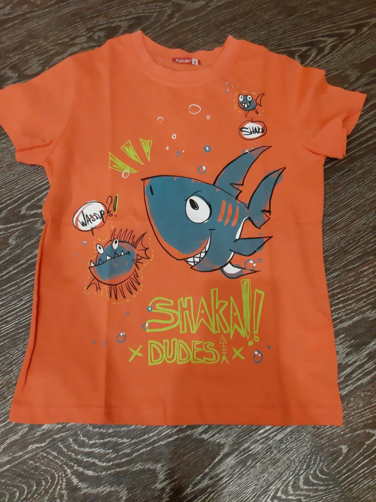 Очень яркая футболка. Нам понравилось качество, не знаем, полиняет ли после стирки. Спасибо за доставку!