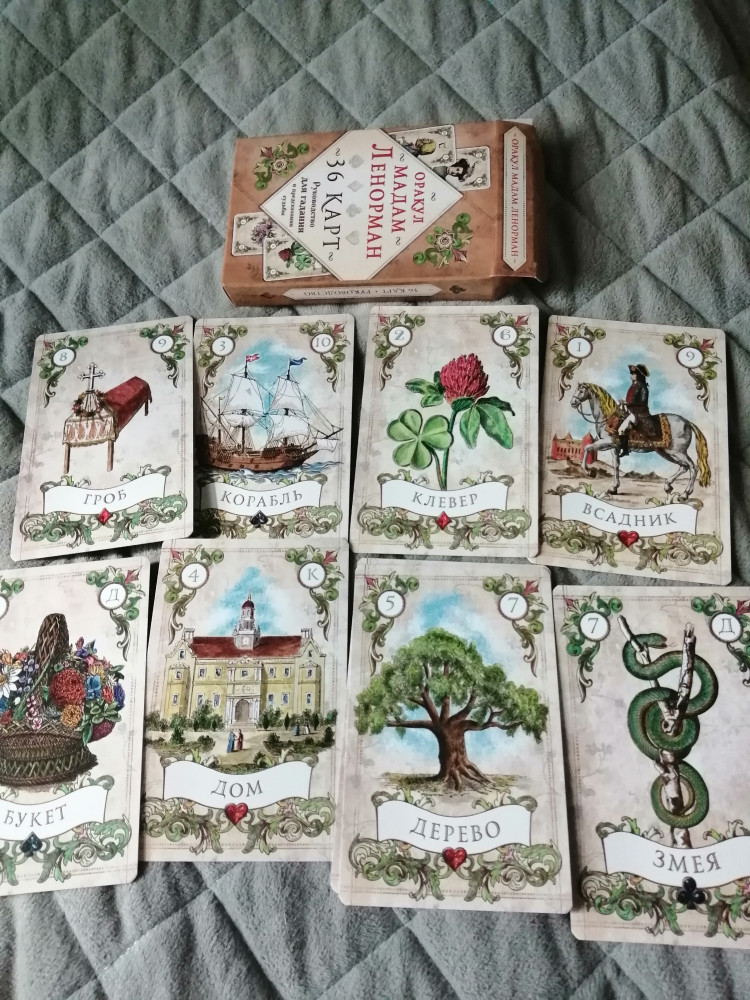 К качеству претензий нет. Красивые, качественные, картинка чёткая, удобно держать в руке. Но почему-то не могу с ними подружиться. Врут и всё. У меня несколько колод Ленорман, но проблема именно с этой.