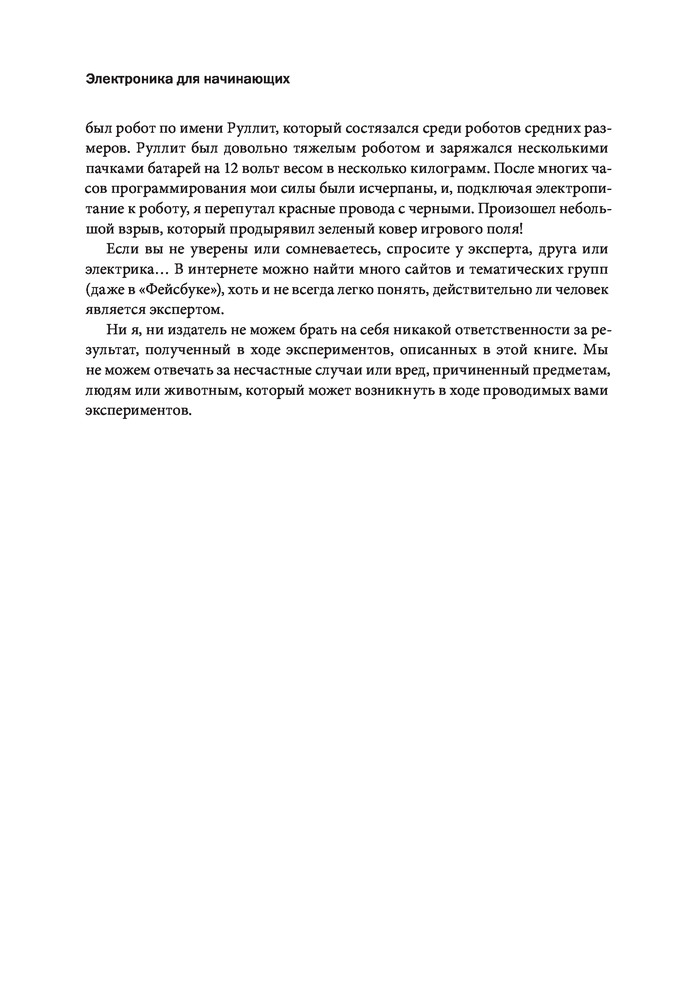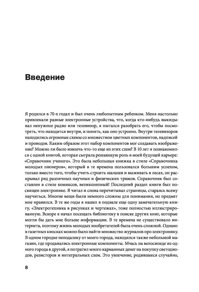Электроника для начинающих. Самый простой пошаговый самоучительВ данный момент этот товар отсутствует в продаже. Возможно, у нас найдется аналогичный или похожий товар здесь. В книге вы найдете как базовые сведения и понятия в области электроники, такие как ток, напряжение, сопротивление и др., так и важную для новичка информацию об электронных компонентах, схемах и микроконтроллерах. Сделайте эту книгу настольной при работе над собственными DIY-проектами, будь то Arduino, Raspberry Pi или ремонт домашней техники своими руками. |