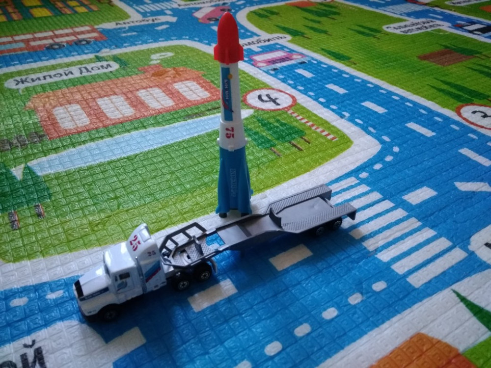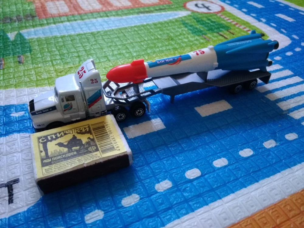 Сам тягач металлический, а платформа и ракета из пластмассы. В первый же день платформа треснула — надо относиться очень аккуратно.