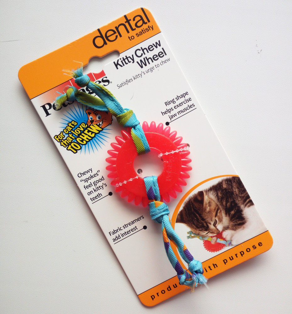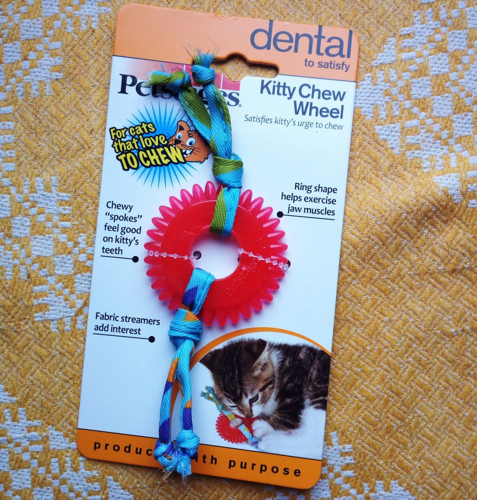 Классное качественное колёсико, резина и правда пропитана кошачьей мятой, но кошкам не зашло, даже моему младшенькому котенку, их больше заинтересовали эти верёвочки по бокам, наверное у них сейчас нет такой надобности, чтобы зубки почесать. А жаль, игрушка прикольная