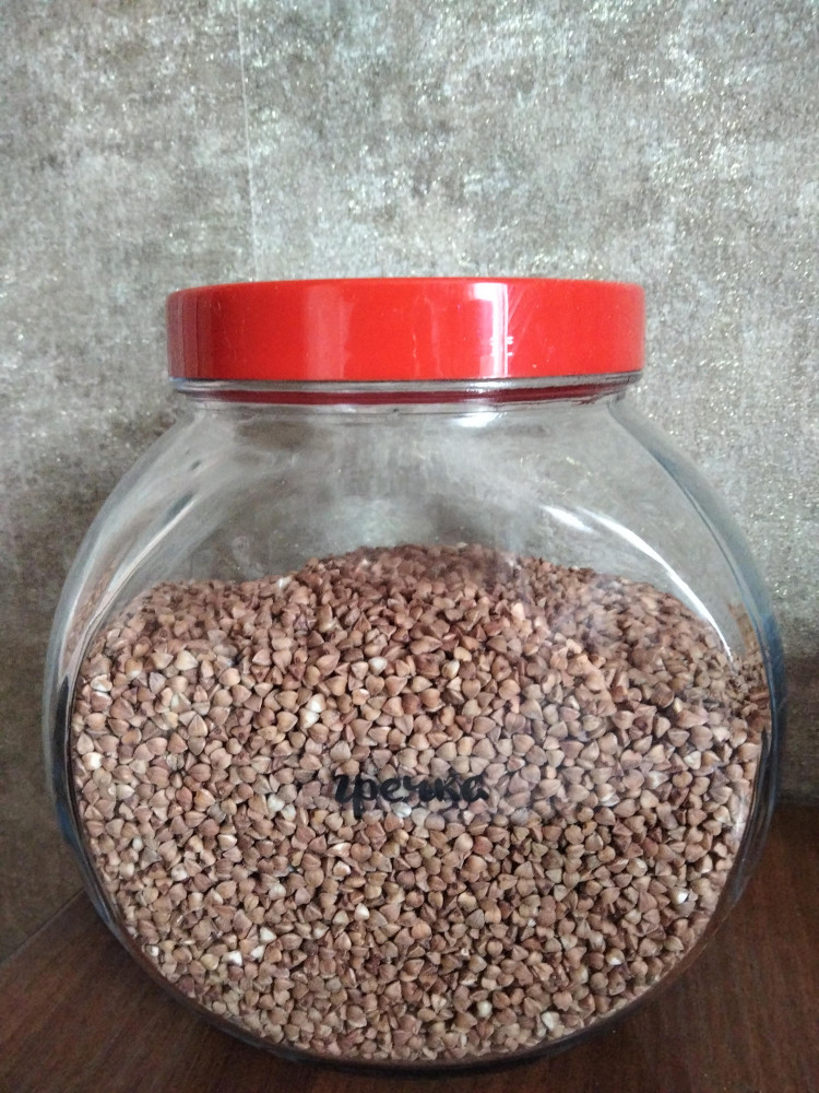 Банка классная, так как я пенсионерка, как раз для сыпучих продуктов, не много и не мало, но килограмм входит.