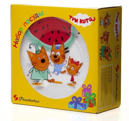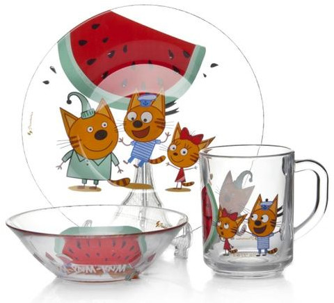 Плохо что не указаны размеры посуды, глубокая тарелка размером как маленький салатник, для супа не подойдет либо для самых маленьких деток, за это и снимаю одну звезду. В целом, набор красочный, ребенку понравился