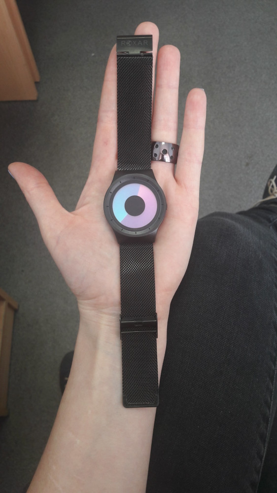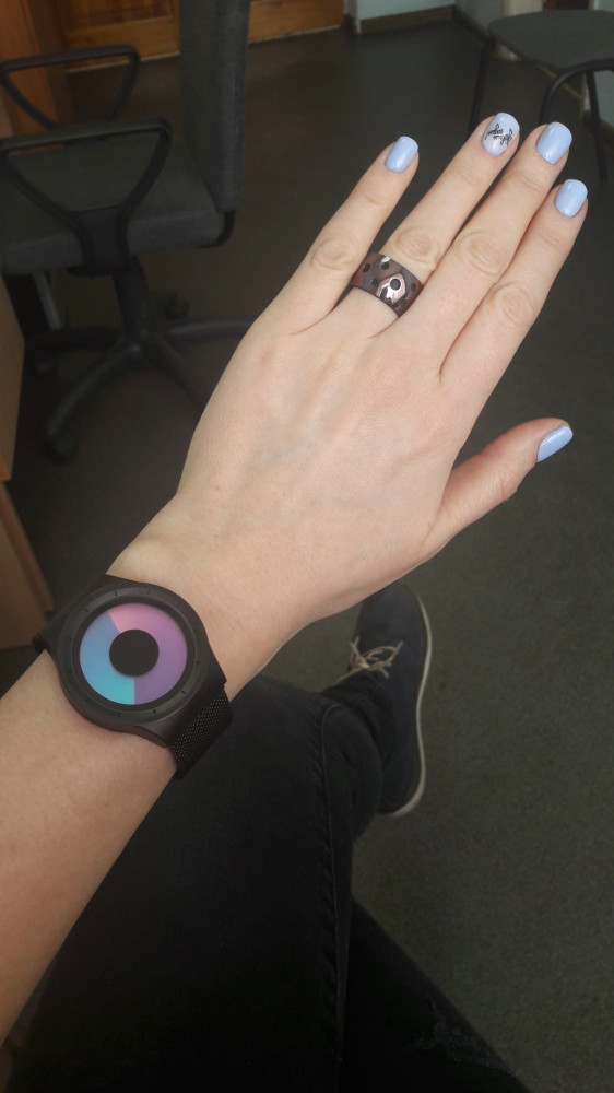 Прекрасные часы, очень приятный браслет, отлично сидят на запястье. Очень стильный циферблат.