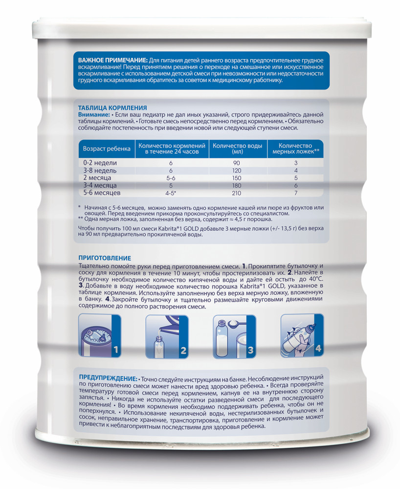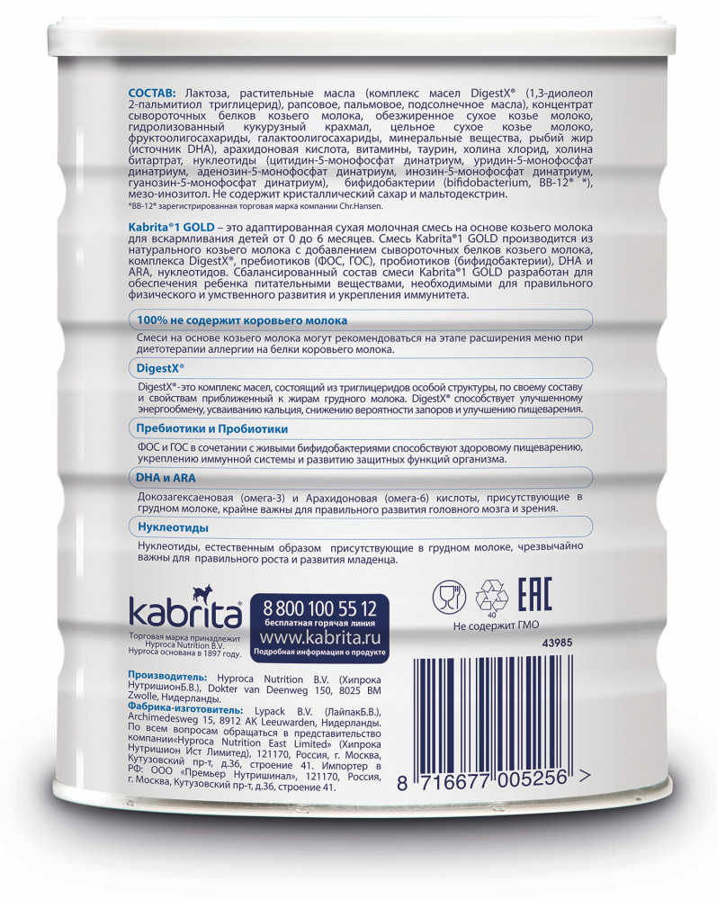 Кабрита 1 Голд құрғақ қоспасы – 2 айлық сәбиге керегінің дәл өзі. Ол ешкі сүтіне жасалған, құрамы бойынша нақты өмірінің алғашқы айларынан бастап тамақтандыруға арналған. Сәбиге қажет барлық минералдар мен аминқышқылдары қосылған. Өөөөте ыңғайлы, қаптама банкасы мықты. Жолға шыққанда бірге алып жүрем, сынып қалады деп қорықпаймын.
