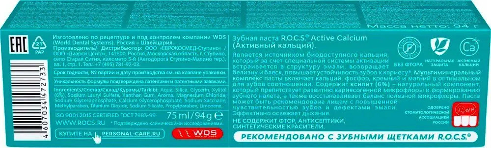 R.O.C.S. Зубная паста «Активный кальций»